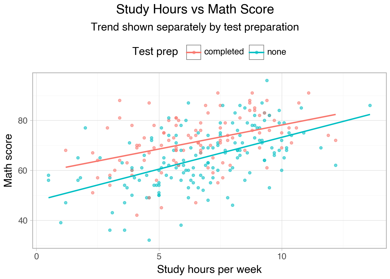 mapping: x=study_hours, y=math_score, color=test_prep